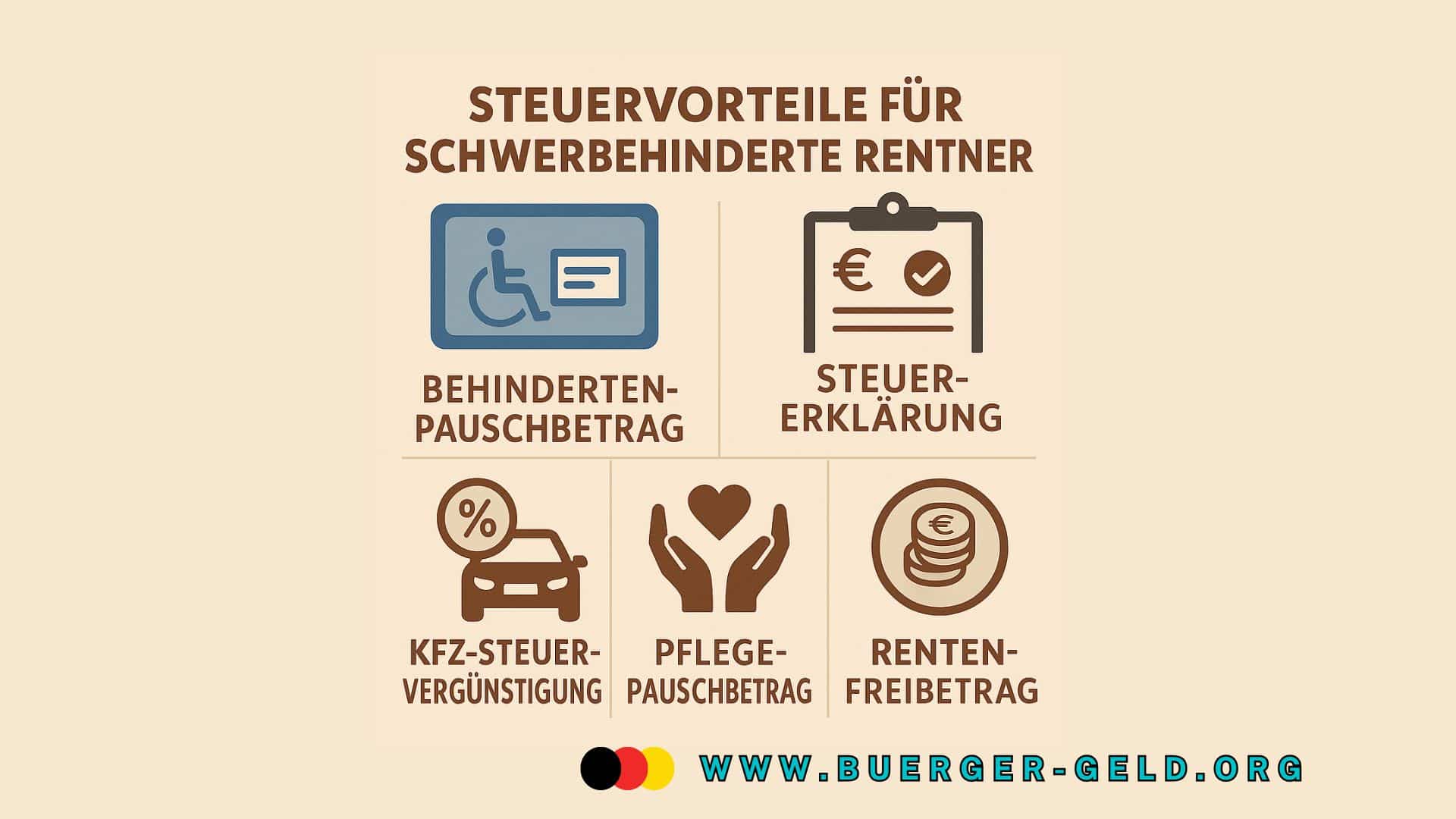 Der wichtigste Steuervorteil für schwerbehinderte Rentner ist der sogenannte Behinderten-Pauschbetrag. Dieser Freibetrag wird abhängig vom Grad der Behinderung (GdB) gewährt und mindert das zu versteuernde Einkommen direkt.